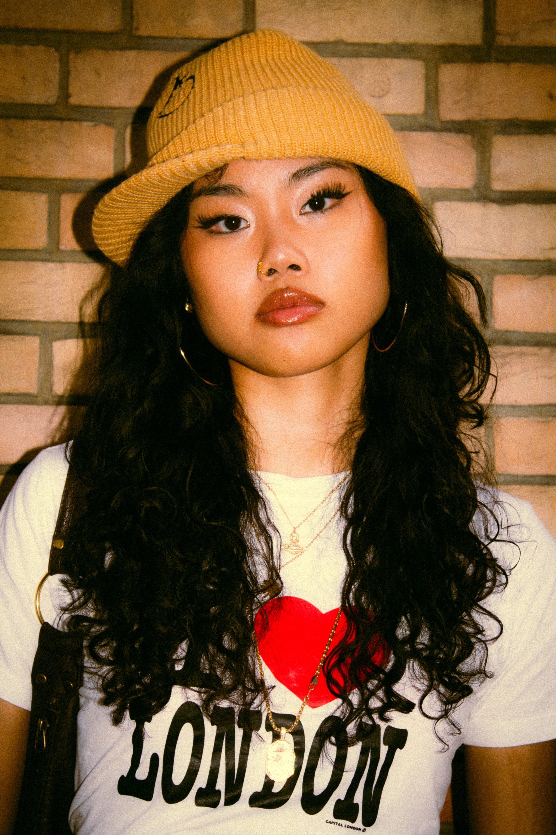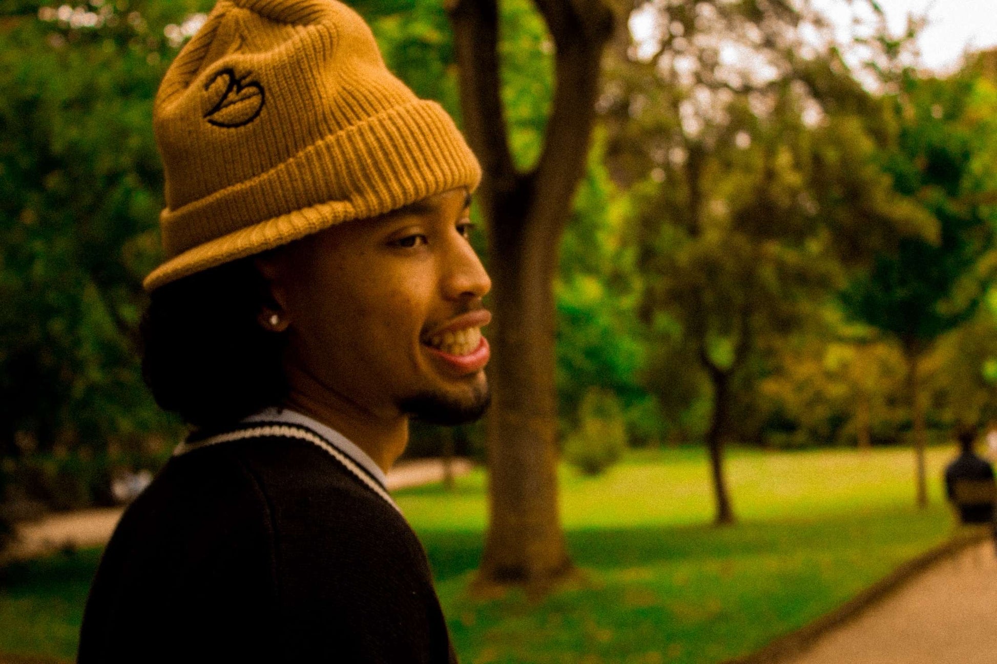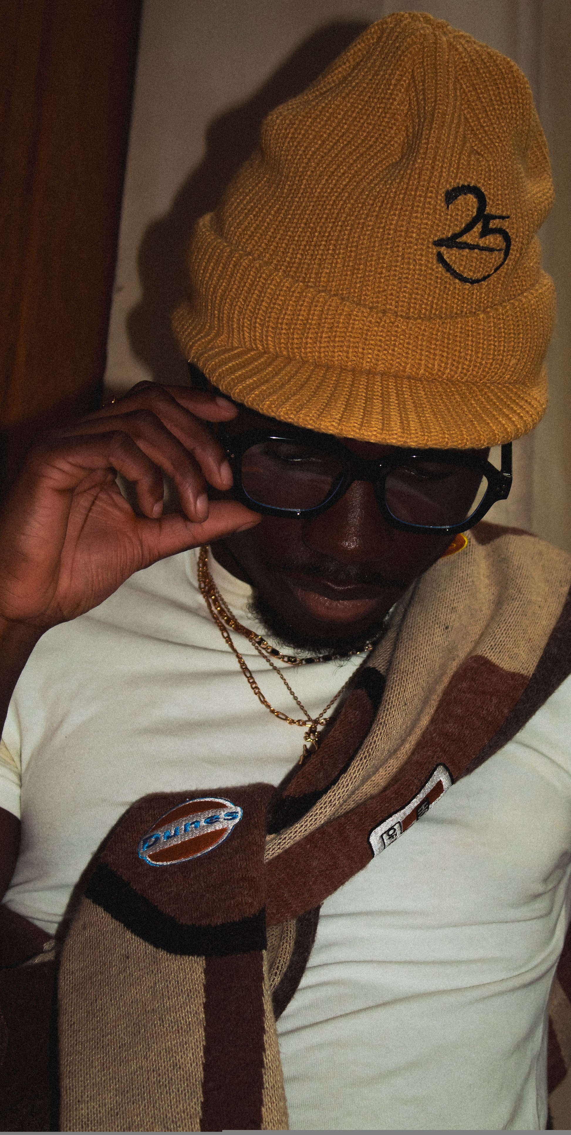 Bonnet à visière en or, avec le logo 25 Kilometers brodé en noir.